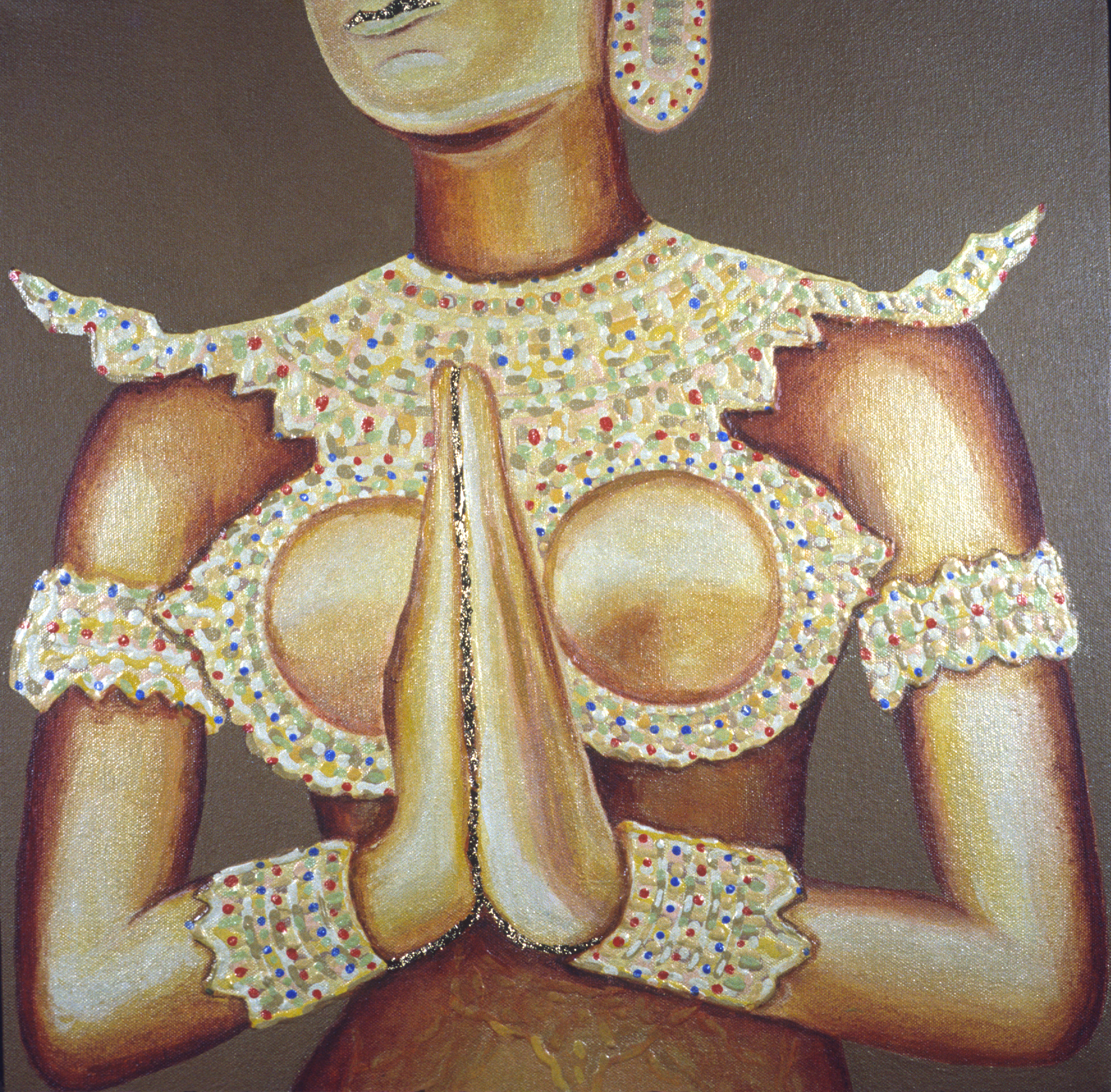 Acrylic and gold leaf on canvas. 16x16