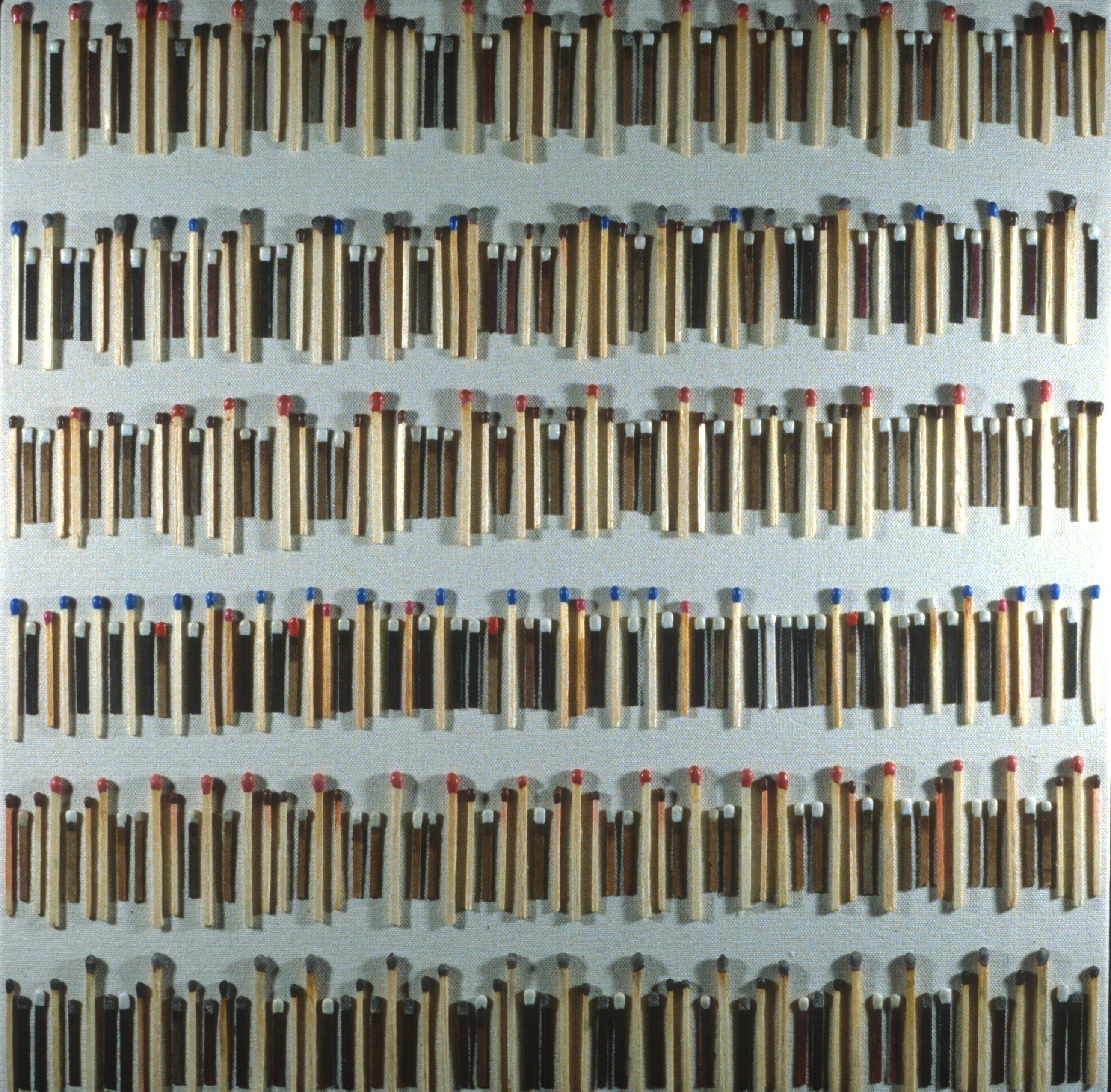 Matches collage on canvas. 16x16